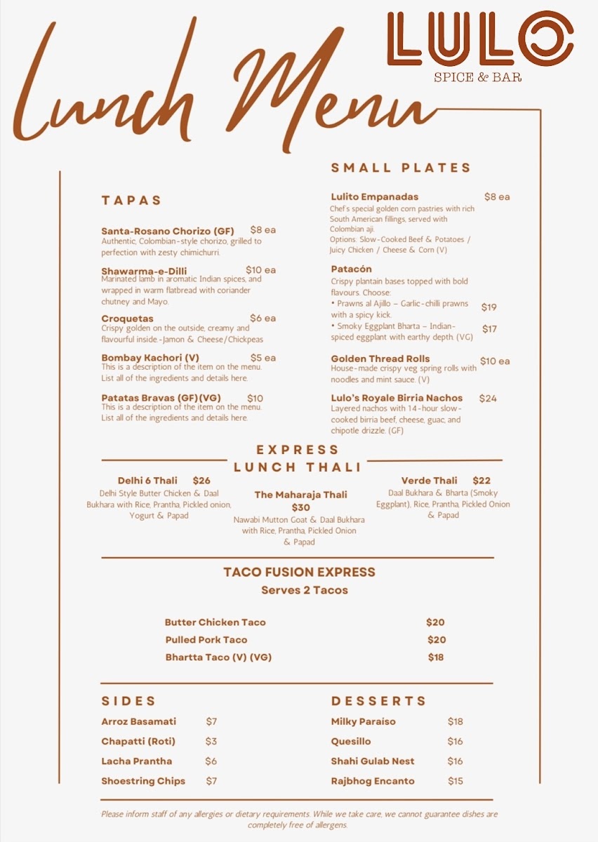 Welcome to Lulo Spice & Bar, a culinary gem located at 798 Glenferrie Rd, Hawthorn. This unique eatery expertly fuses South American and Indian cuisine, creating a wonderful tapestry of flavors that tantalize the taste buds. The much-praised “Feed Me” menu is a must-try, ensuring a delightful journey through diverse dishes.